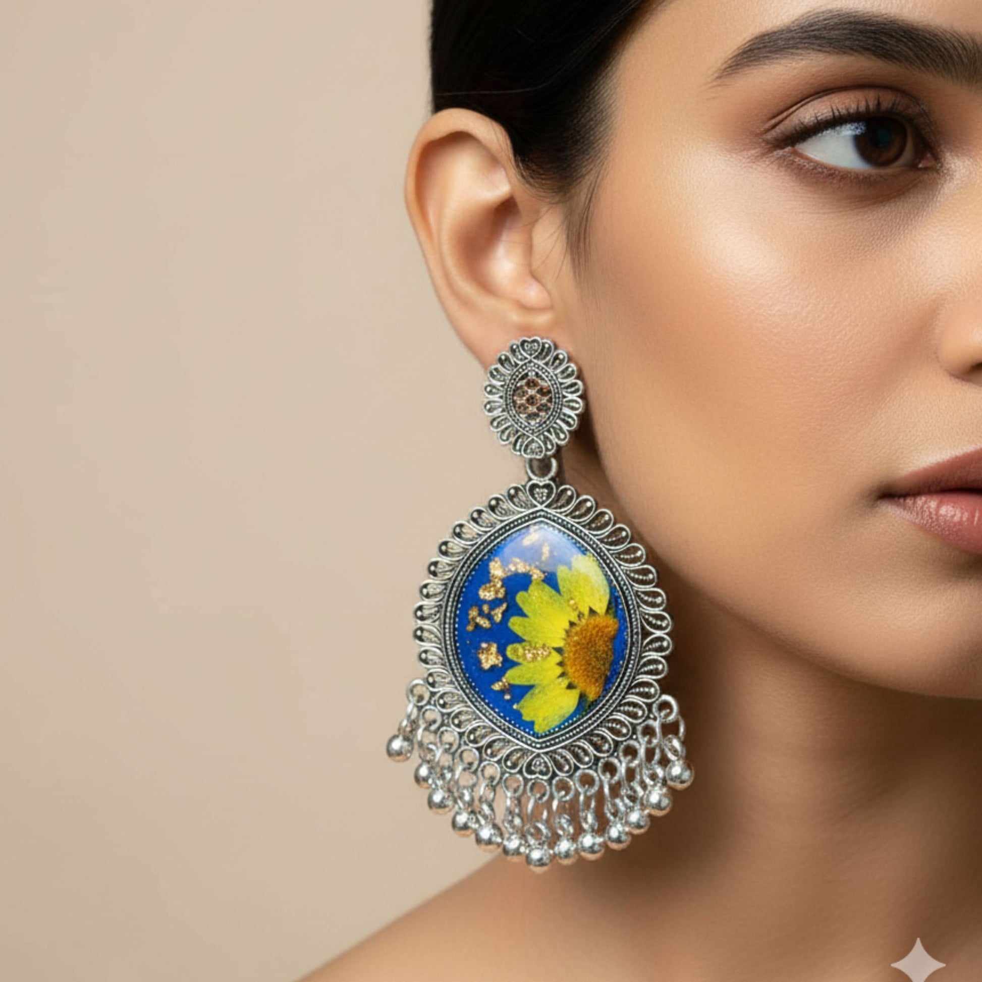 With deep jewel tones and a glassy shine, the Aabroo Jhumko is elegance in motion. Handcrafted to complement traditional ensembles with a modern twist.