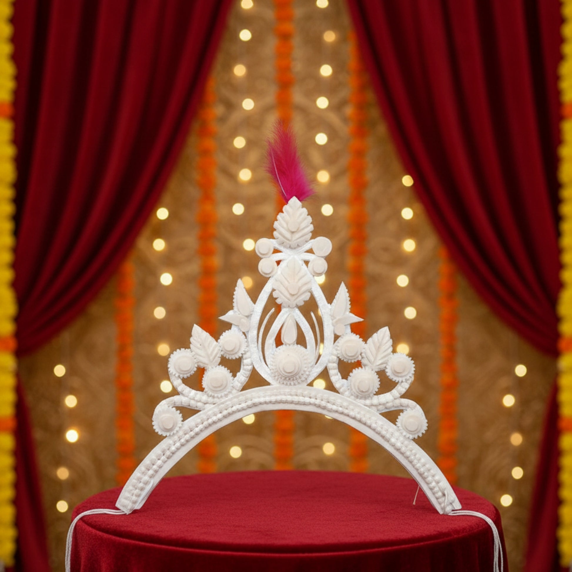 Make your wedding unforgettable with this elegant pure sola wedding mukut crafted for Bengali brides. Showcasing traditional craftsmanship and fine detailing, it beautifully complements bridal sarees and jewelry. Soft, lightweight, and comfortable, this mukut ensures you look graceful and radiant throughout your marriage ceremony.