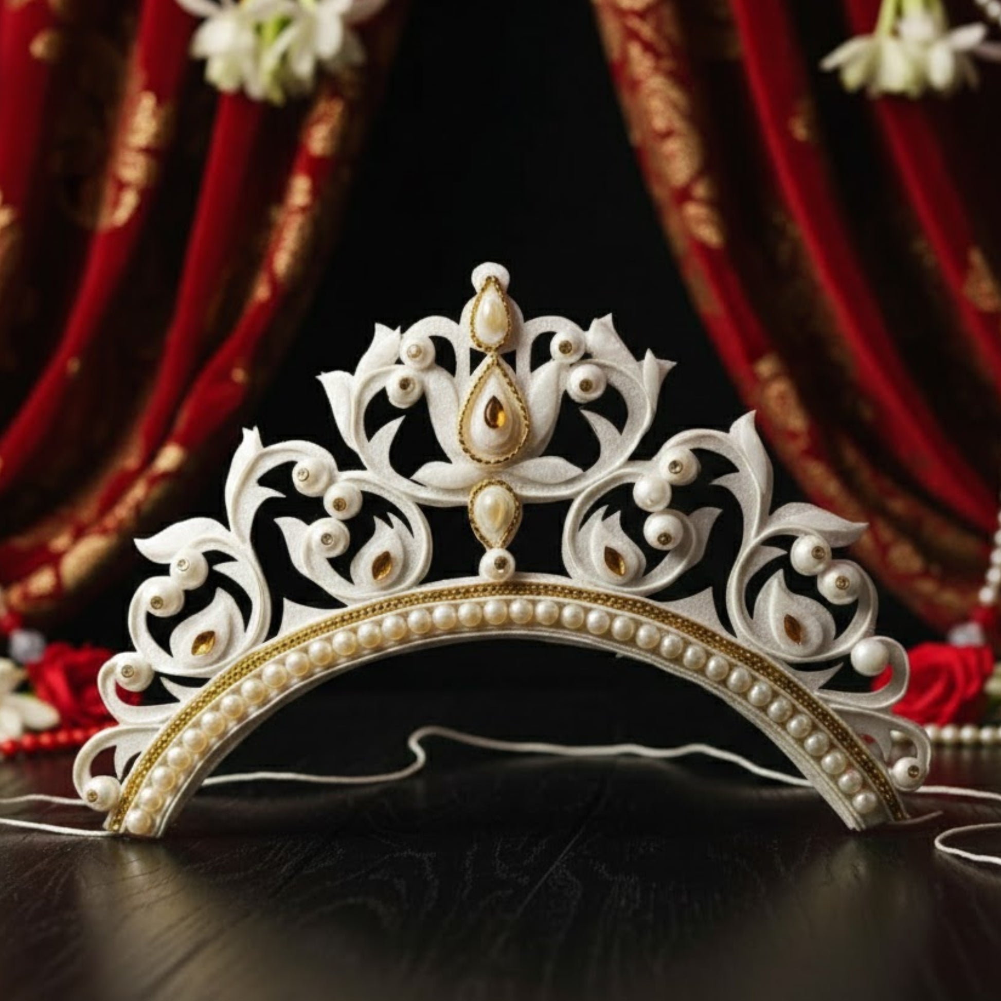 - Material: High-quality Thermocol, Beads (White, Red, Silver, etc.)