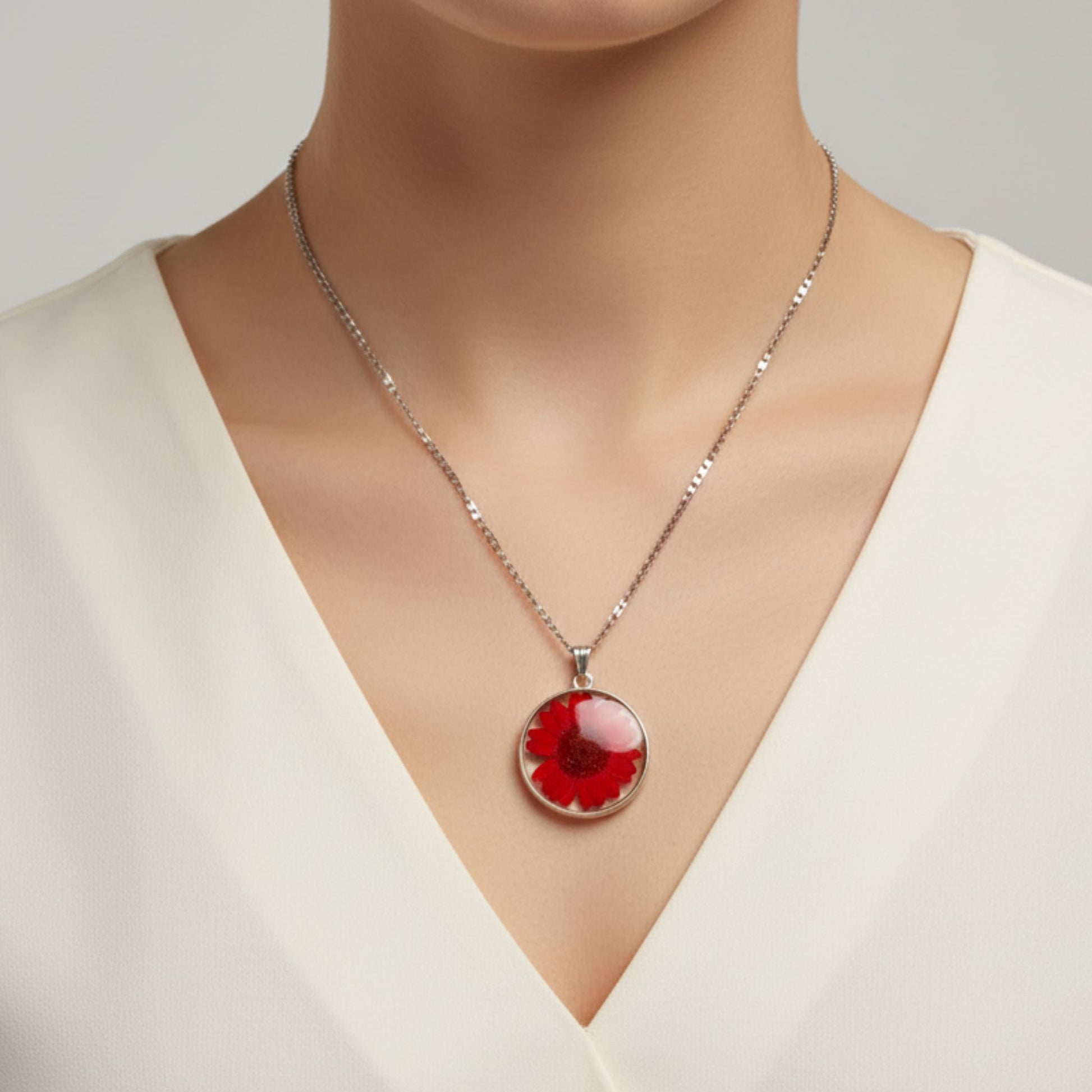 Raktagolap Pendant – Silver Frame with Red Bloom