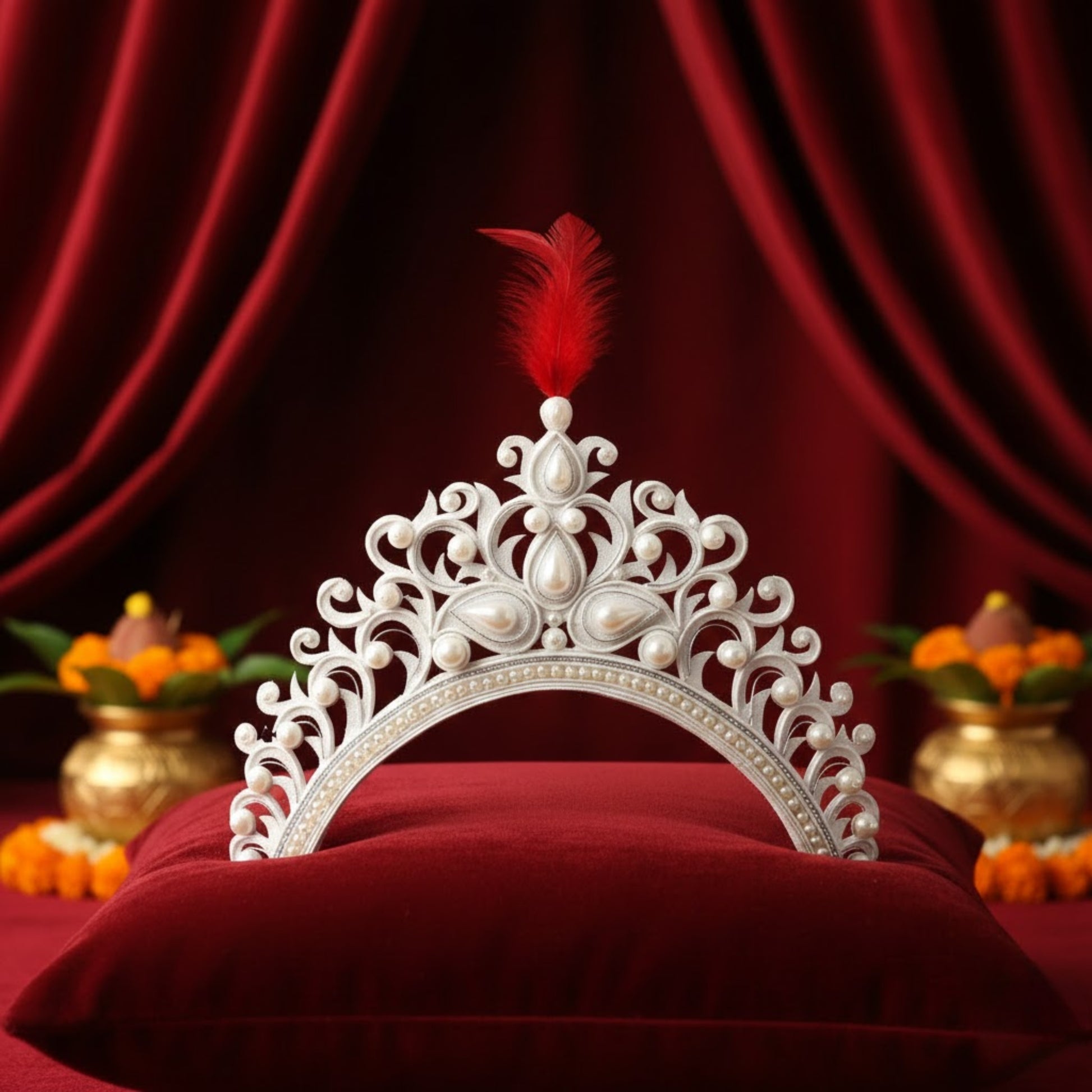 - Material: High-quality Thermocol, Beads (White, Red, Silver, etc.)